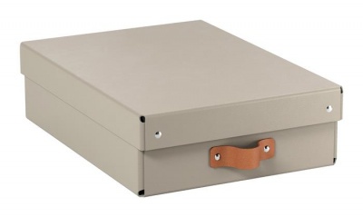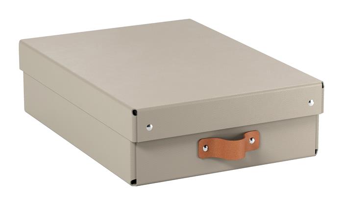 Štýlová kožená rukoväť uľahčuje vyberanie kartónových úložných boxov z políc, úložných či šatníkov.