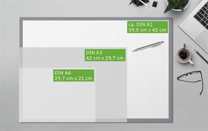 s trojročným kalendárom (2026/2027/2028) -s týždenným plánovačom -štvorjazyčný: angličtina, nemčina, francúzština a holandčina -veľkosť: približne A2 -odolný, protišmykový a vďaka masívnej kartónovej zadnej doske úplne rovno leží -použiteľný aj ako podložka pod myš -30 listov -farba: zelená, modrá -s certifikátom FSC