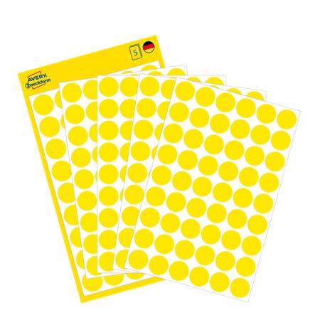 Etikety, okrúhle, priemer: 12 mm, AVERY ZWECKFORM, žlté, 270 etikiet/bal