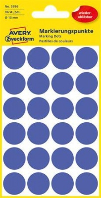 Etikety, okrúhle, priemer: 18 mm, odstrániteľné, AVERY ZWECKFORM, modré, 96 etikiet/bal