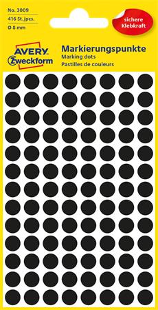 Etikety, okrúhle, priemer: 8 mm, AVERY ZWECKFORM, čierne, 416 etikiet/bal