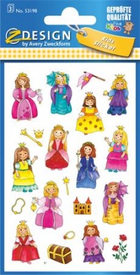 Nálepky, papier, 3 hárky, 76x120 mm, AVERY ZWECKFORM, "Z-Design No.53198", princezná