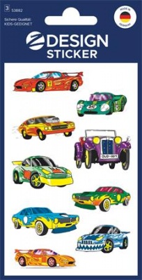 Nálepky, papier, 3 hárky, 76x120 mm, AVERY ZWECKFORM, "Z-Design No.53882", farebné autá