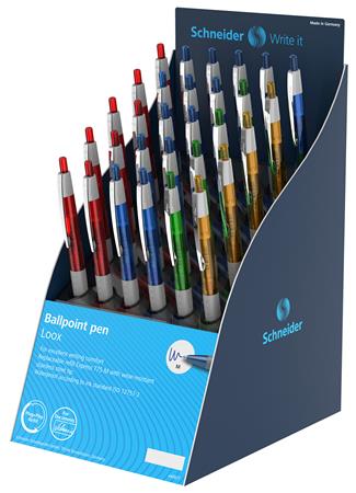 Guľôčkové pero, displej, 0,5 mm, stláčací mechanizmus, SCHNEIDER "Loox", mix farieb