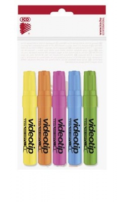 Zvýrazňovač, sada, 1-4 mm, ICO "Videotip", 5 rôznych farieb