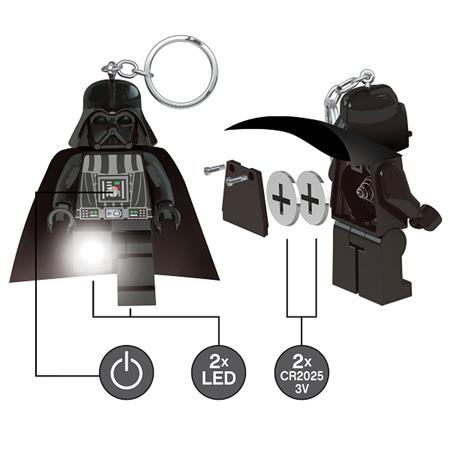 LEGO® Star Wars Darth Vader svietiaca kľúčenka! výška: 7,5 cm (ruky a nohy sú odpojiteľné) -funguje na 2x CR2025/3V batérie (sú súčasťou balenia) -odporúčaný vek: 6+