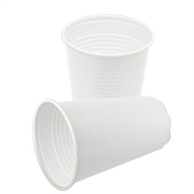 jednorazový biely plastový pohár