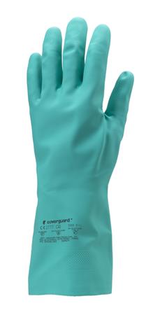 Ochranné rukavice, nitril, chemicky odolné, zdrsnený povrch, veľkosť 7/S, zelené