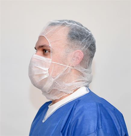 Kombinácia kukly zakrývajúcej celú hlavu a elastického, priedušného ústneho rúška – ideálna do sterilnejších, hygienických, potravinárskych alebo laboratórnych prostredí. -materiál: polypropylén, netkaná textília (20 gsm) -kukla zakrývajúca celú hlavu -2-vrstvové vyhotovenie -s gumičkou -s priedušným ústnym rúškom -farba: biela -balenie: 100 ks/bal, 5 bal/kartón -certifikácia pre čisté priestory ISO 8