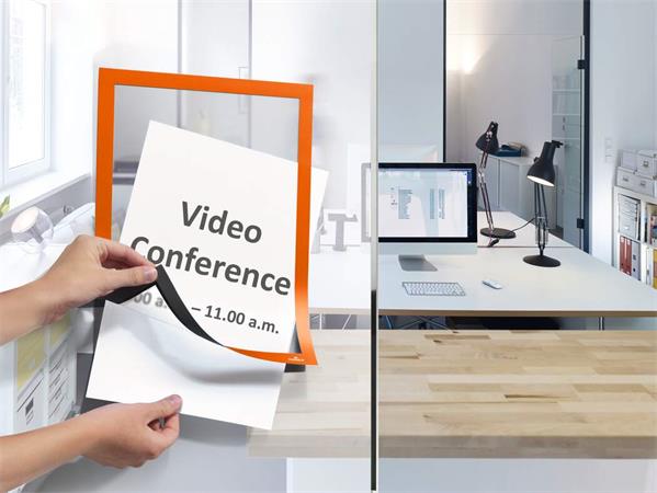 S DURAFRAME® môžete profesionálne a pohodlne umiestniť svoje dokumenty na akýkoľvek hladký, tvrdý povrch, ako je okno, kancelárska skriňa alebo dvere.