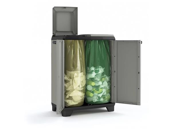 KETER Planet štýlovo a jednoducho prispieva k ochrane životného prostredia.Jeho moderný dizajn sa hodí do každého priestoru. -vhodná na uloženie dvoch vriec s objemom do 110 litrov -vyrobený z 80% recyklovaného plastu -ľahko sa čistí - jednoduchá montáž -vybavená dvoma hornými vekami so špeciálne tvarovanými otvormi pre jednoduché otváranie - predné dvojkrídlové dvierka s pohodlnými úchytkami - s nastaviteľnými nohami -rozmery: 39x68 x92 cm (šírka x hĺbka x výška) -hmotnosť: 5,96 kg - vrecia nie sú súčasťou balenia