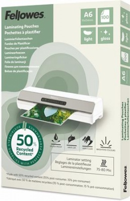 Laminovacia fólia, 80 mikr., A6, lesklá, 100 ks, FELLOWES "Light"