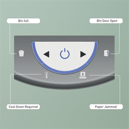 -doba pauzy: 60 min – dynamický LED displej, ktorý upozorňuje na naplnenosť zásobníka, otvorené dvere, prehriatie a preťaženie